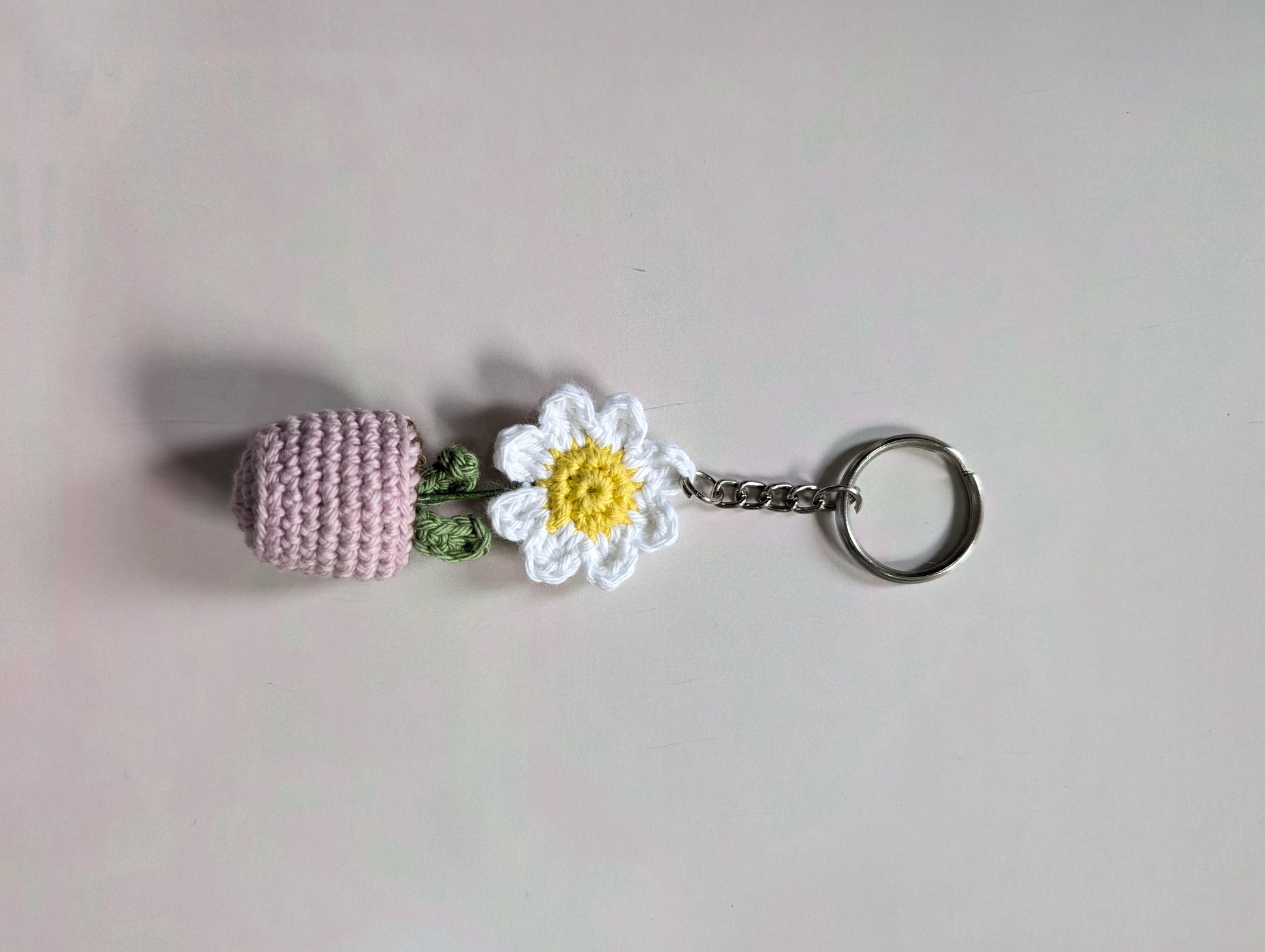 Handmade Crochet Daisy Pot Keychain | Mini Flower Charm (3 Inch)