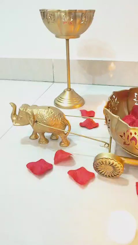 Each piece is handcrafted with intricate cutwork lotus designs and a radiant gold finish, making it ideal for festive décor, weddings, pooja rooms, or living spaces. Fill the urli with flowers, water, or floating candles to add a serene, glowing touch to your home.